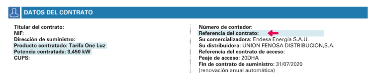 - Número de referencia del contrato.